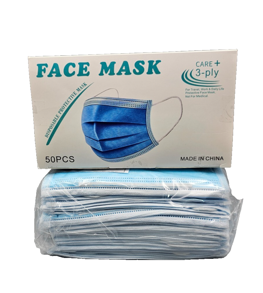 Blue 3-Ply Disposable Face Masks - Box of 50