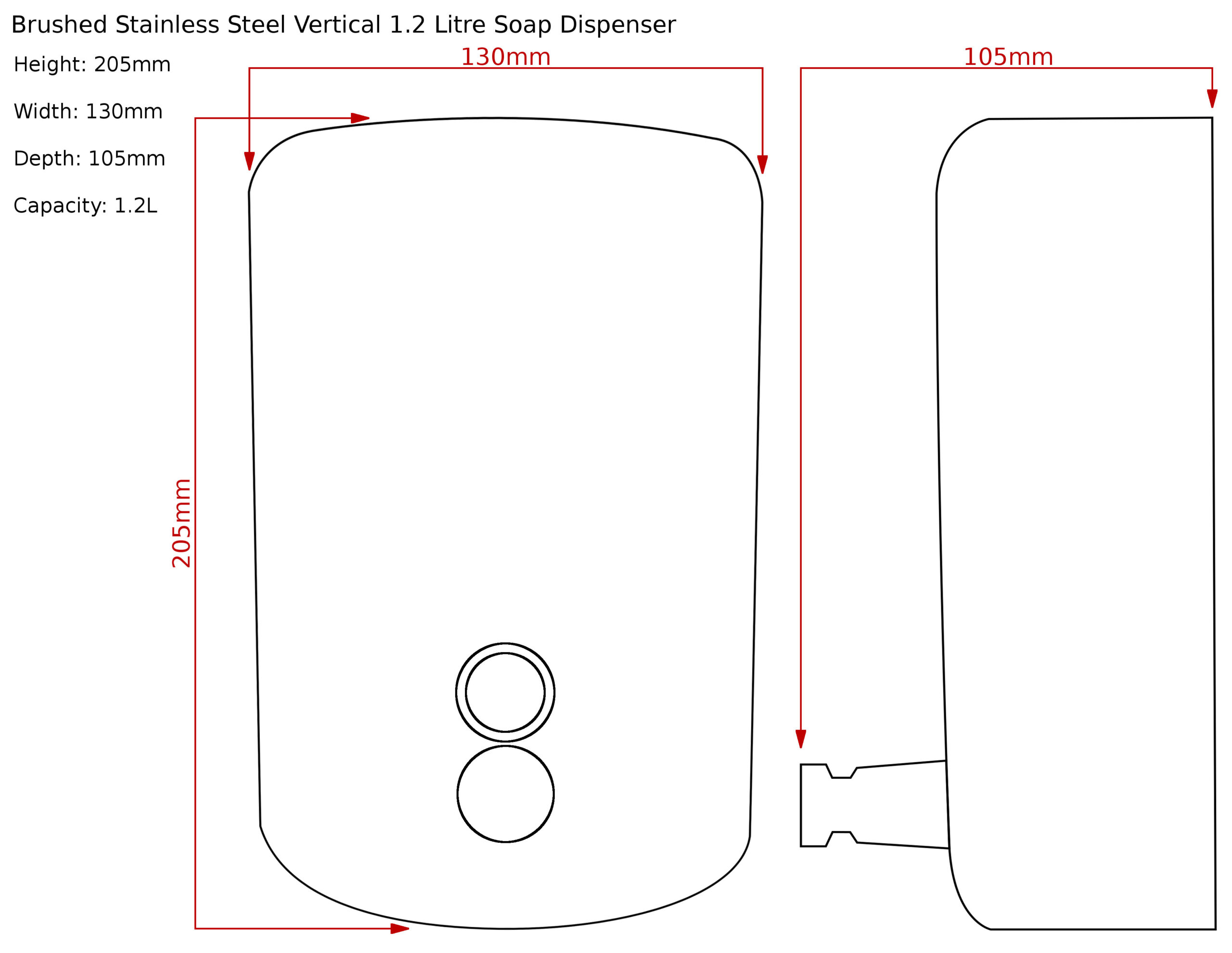 Polished Stainless Steel Vertical Soap Dispenser - 1.2 Litres