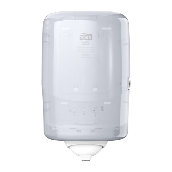 The Tork Reflex Single Sheet Mini Centrefeed Dispenser is ideal for those seeking a hand and surface wiping solution; and with its space-saving design and rotating nozzle, it fits into any size professional environment. Featuring single-sheet dispensing, this system controls consumption by up to 37% when compared to the Tork Centrefeed system. One hand operation makes it easy to use. Reduce cross contamination risks because users only touch what they use. Robust design made to withstand the toughest environments. Run out indicator refills means you're never left without paper. Improve overall hygiene due to easy cleaning. 32cm x 19cm x 18cm. White.