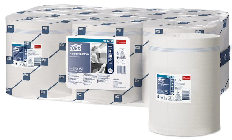 The 2-ply multi-purpose Tork Wiping Paper Plus is ideal for mopping up liquids and hand wiping. This paper can be used in the Tork Centrefeed dispenser, which is a high-capacity, versatile solution for professional environments where both hand and surface wiping is required. Soft and strong, yet absorbent paper, for more efficient drying with less waste. Operable with one hand makes it easy to use. Case of 6 x 19.5cm x 160m rolls per case. 2-ply. White.
